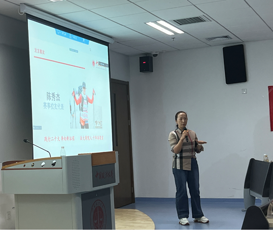 沙1参赛队队委吴仲凤分享了首届亚沙赛的拼搏历程,表示自己最大的感受就是团队对于成功很重要;沙2参赛队校友王劲英分享了自己参加沙2、沙8、沙10以及丝路赛的经历,以及自己和父亲的交流往事。她表示跑步对身边的人是个很好的赋能激励,并鼓励大家“如果你向往一个地方,无论什么年龄,一定要去”;沙3参赛队校友孔玲通过视频分享了沙3的点点滴滴,她说“坚持像沙漠里的植物一样顽强生长,心灵像沙漠里的天空一样湛蓝清澈”,鼓励大家一起走出去、一起看更大的世界,让在座的学弟学妹们对沙漠无比神往;首届国际沙巴体育
