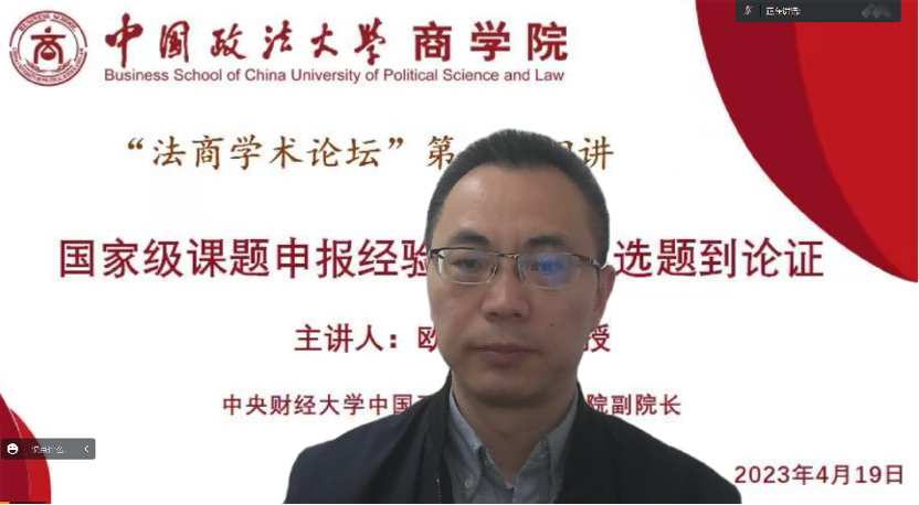 2023年4月19日晚上19:00,中央财经大学中国互联网经济研究院副院长欧阳日辉教授应我院之邀,在腾讯线上会议进行了题为“国家级课题申报经验分享:从选题到论证”的专题讲座。本院师生以及其他高校的师生共一百余人参与了此次讲座。讲座由沙巴体育