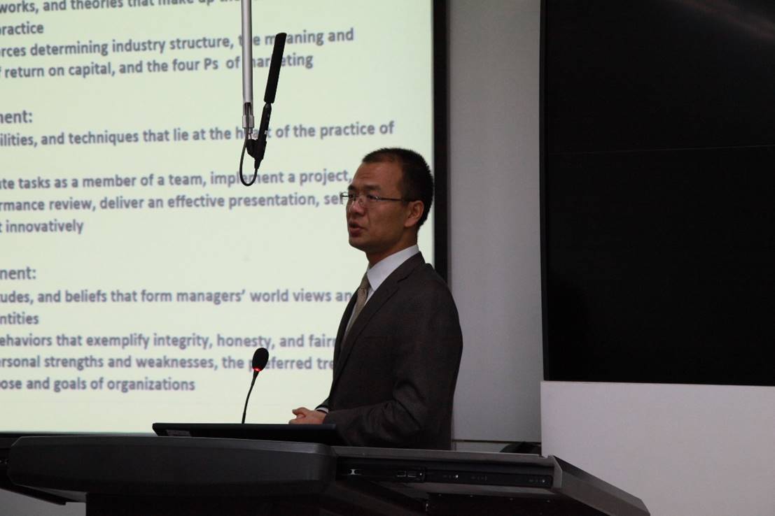 朱晓武老师首先介绍了商学教育的现状和《企业经营模拟》课程的准备历程。朱晓武老师说,当今世界的商学教育进入了多元化发展的新时期,新的教育理念和教学模式层出不穷。如何在大环境下找到有效实施商学教育的新方法,如何从“Knowing(知)”到“Doing(行)”再到“Being(悟)”, 完成“知行合一,技道一体“的商学培养过程,一直都是沙巴体育