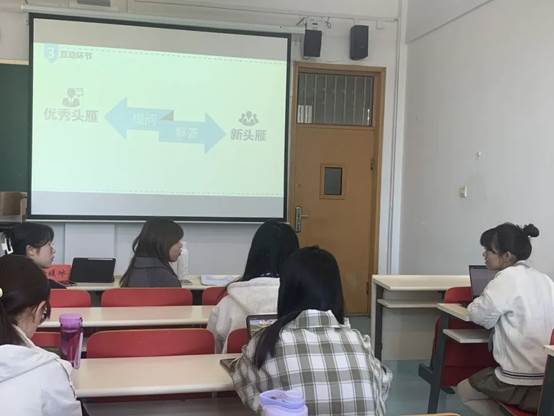 20级优秀头雁易樱旻。在演讲中,嘉宾讲述了头雁职责与下寝内容、社团部门工作经历、资源利用等四个方面。嘉宾讲解头雁交接和职责、学习生活等内容来帮助新头雁更好的带领雁阵振翅飞翔。